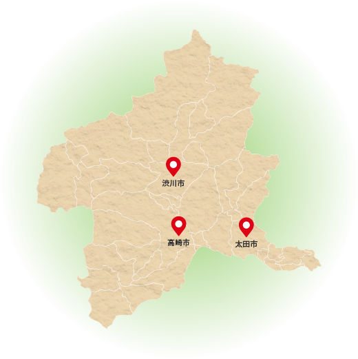 高崎、渋川、太田に支店を持っているため、群馬県全域をカバー。高崎支店では鉄鋼関連、渋川支店では一般の工場、太田支店では自動車関連といったように支店によって取引先業種には特色があります。