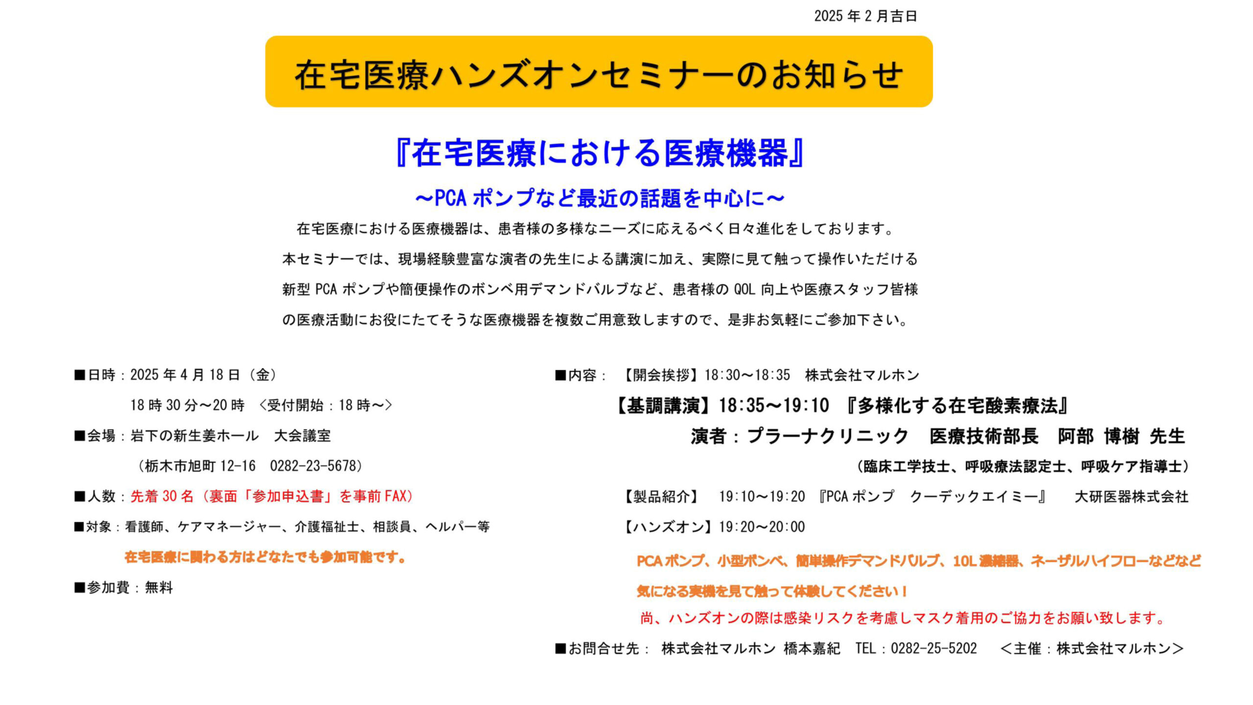 2025年4月18日に在宅医療ハンズオンセミナーを開催します。