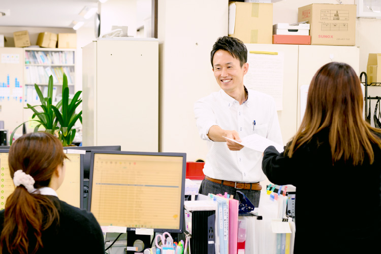 電話応対や来客時の接遇、経理業務やデータ入力など、多彩なサポート業務で、営業担当やルート配送担当を支えます。