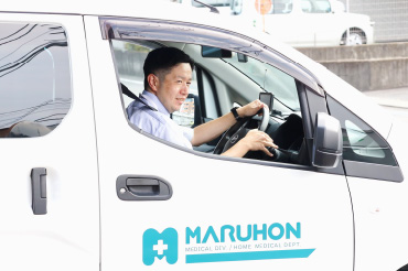 前職の営業はけっこうノルマがきつく、転職を決意。弊社の医療事業部にはノルマがなく、落ち着いた環境で仕事ができるのが魅力です。在宅医療部は、在宅酸素療法や在宅人工呼吸療法、睡眠時無呼吸症候群の治療装置など、在宅で療養する患者様に向けた医療機器を、医療機関を通してレンタルしています。入社すると、まずは酸素ボンベなどの医療機器を患者様の自宅に配達することからスタート。2〜3年の配達担当の間に、商品である医療機器類の知識を徹底的に覚えます。患者様や家族から「説明が分かりやすい」とお褒めの言葉をいただけるとホッとします。